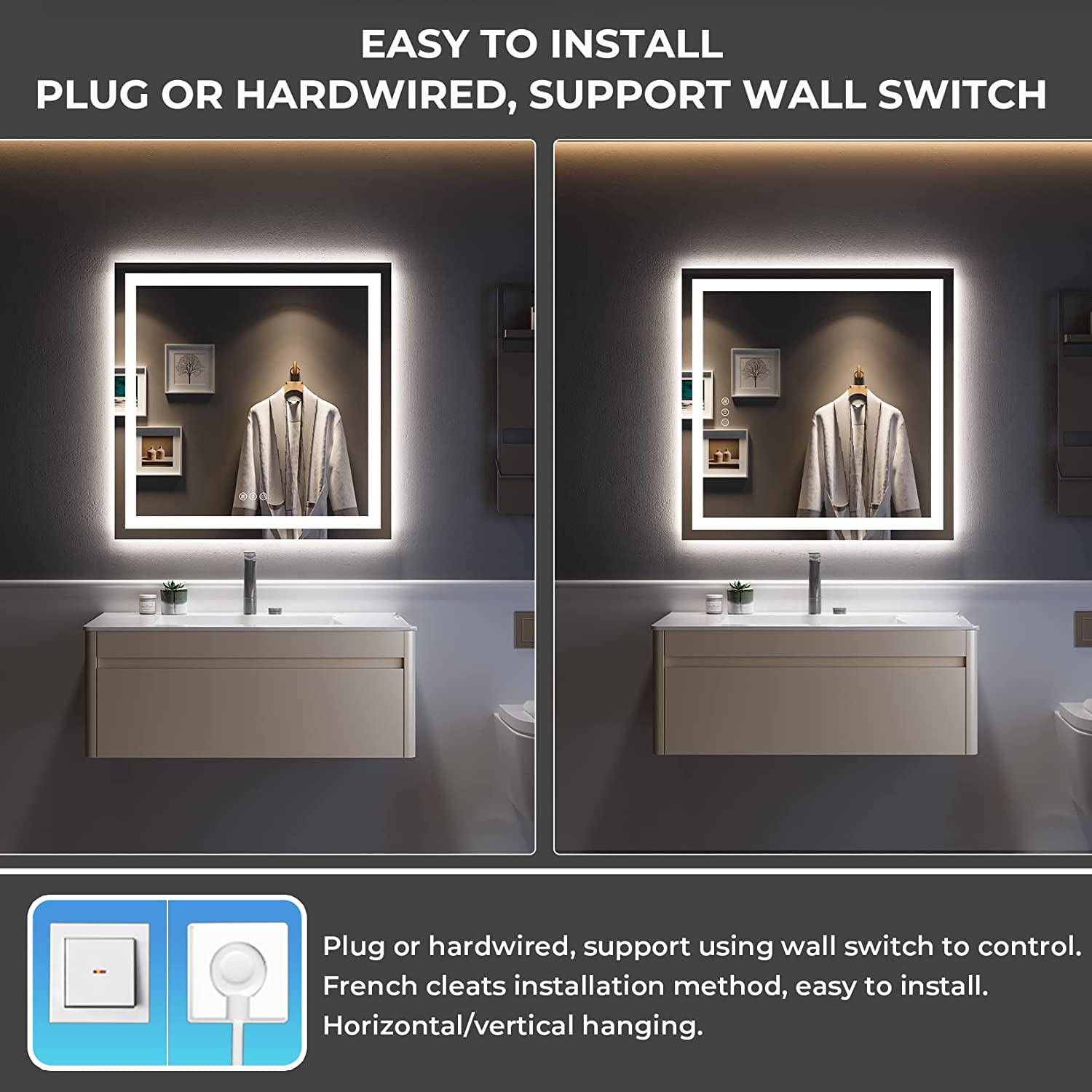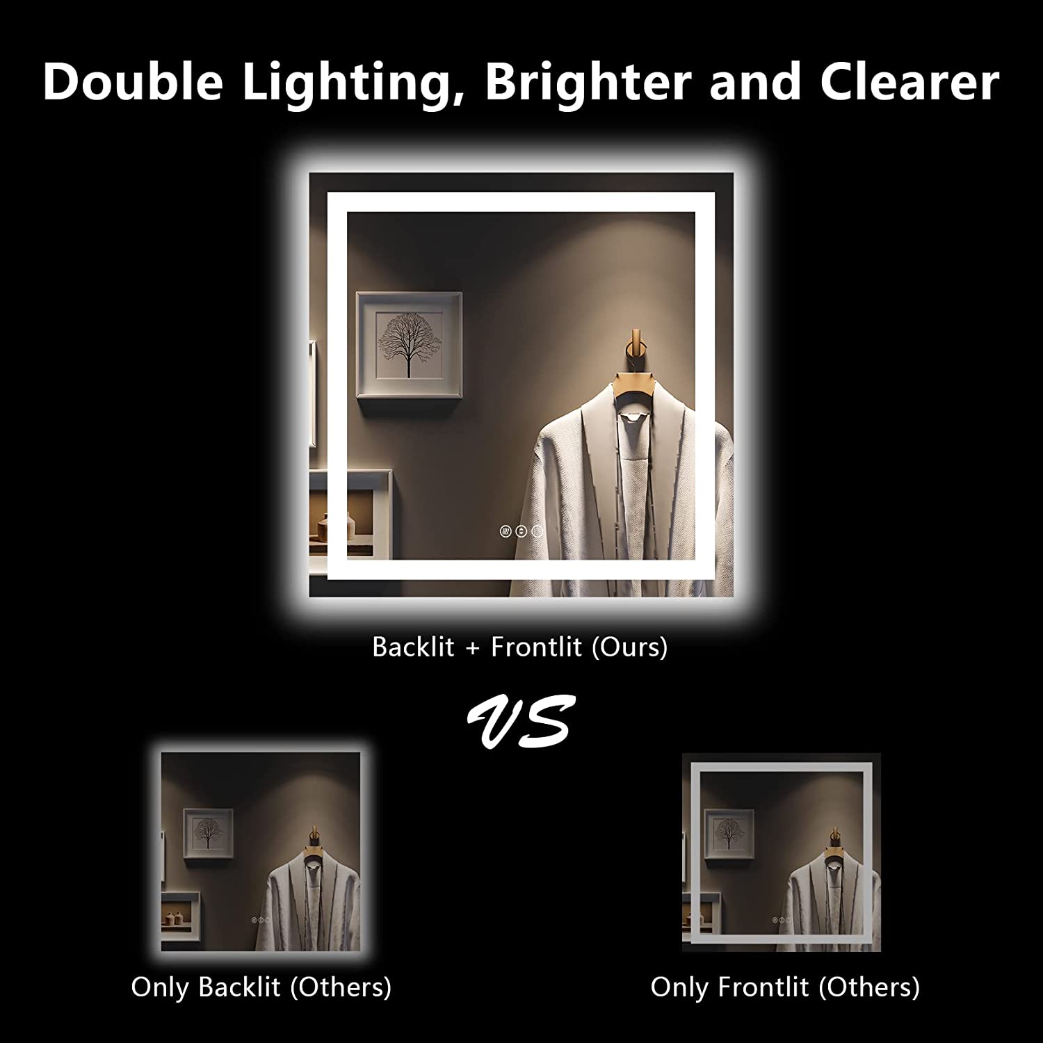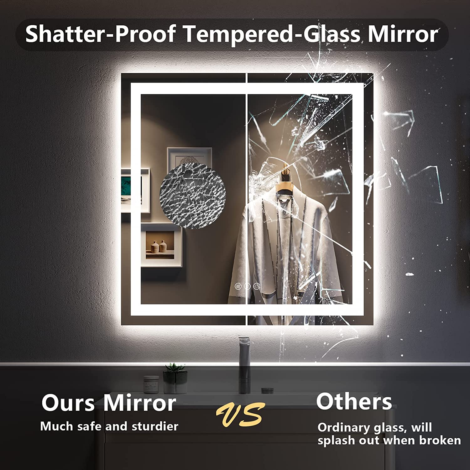 YEELAIT Backlit + Front-Lighted LED Mirror for Bathroom 36 x 36 Inch