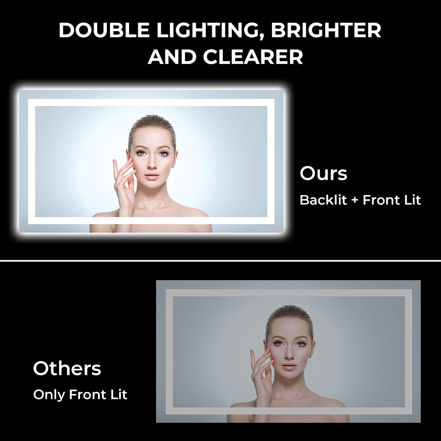 - π Superior Brightness & Double Lights - Unlike traditional bathroom mirrors, our YEELAIT LED mirror features both front and backlit, boasting two bright LED light strips. This delivers more than twice the brightness for a super clear, well-lit experience, perfect for detailed tasks like makeup application, shaving, and dressing. The frameless design adds a modern touch to your home, hotel, salon, or office.