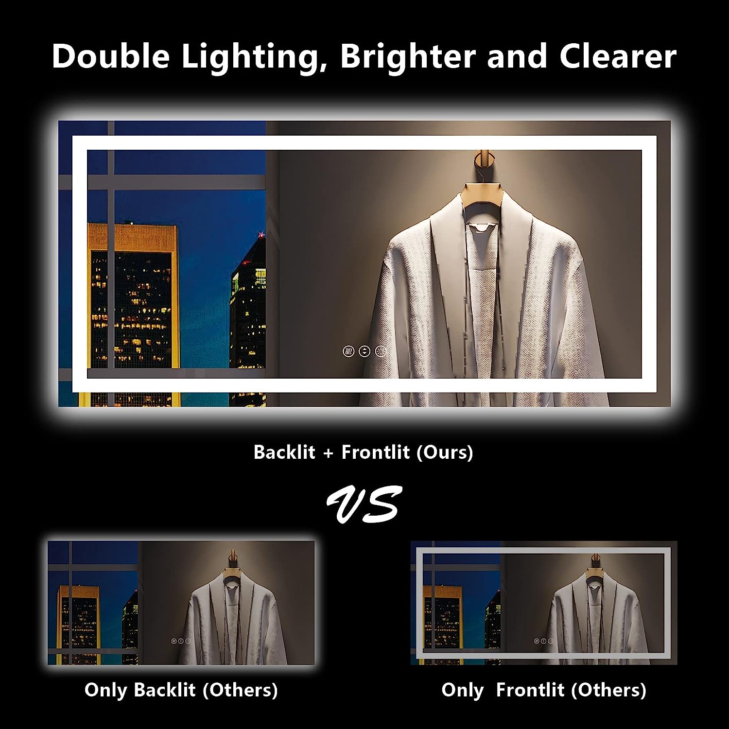 - π Superior Brightness & Double Lights - Unlike traditional bathroom mirrors, our YEELAIT LED mirror features both front and backlit, boasting two bright LED light strips. This delivers more than twice the brightness for a super clear, well-lit experience, perfect for detailed tasks like makeup application, shaving, and dressing. The frameless design adds a modern touch to your home, hotel, salon, or office.