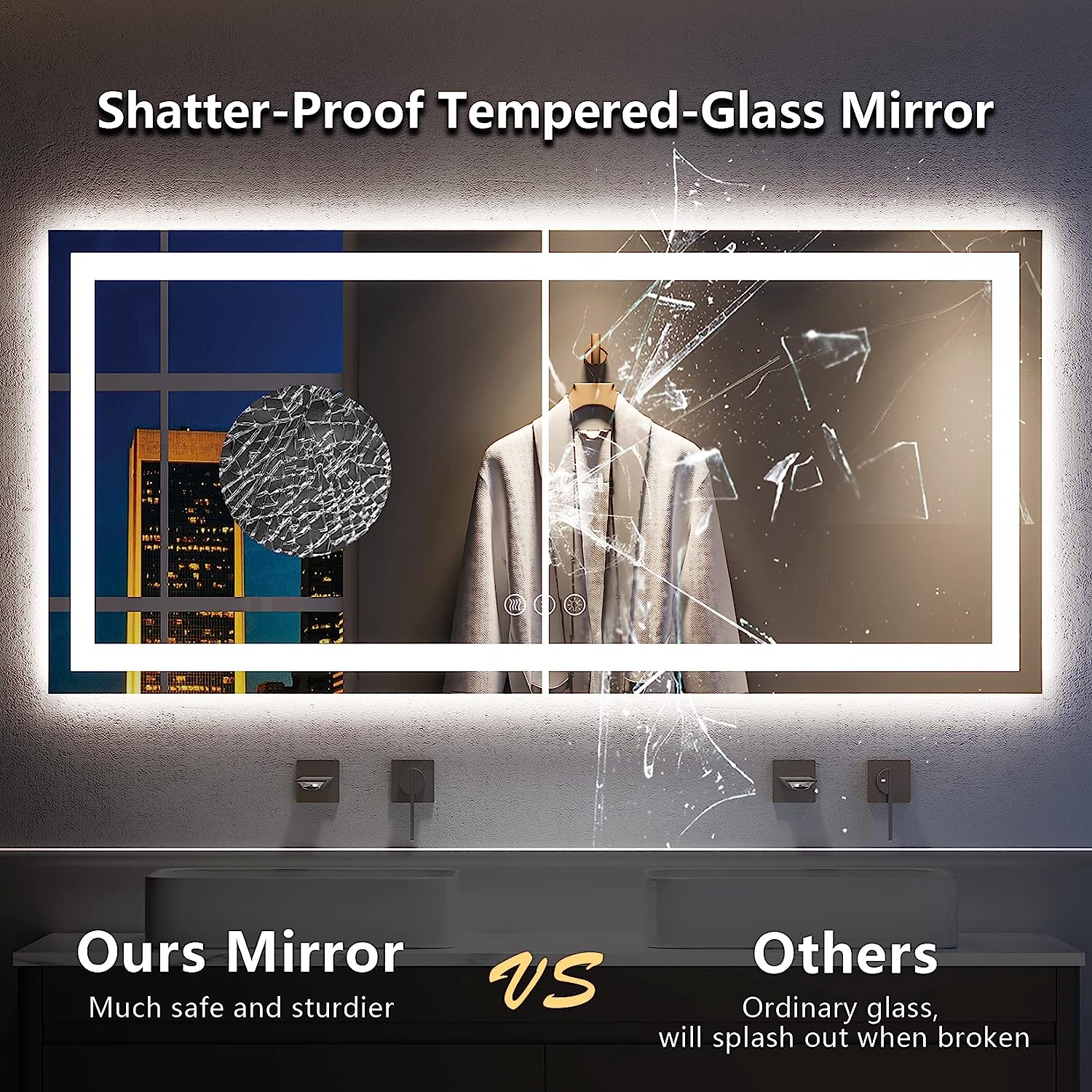- π‘Shatter-Proof & Waterproof - Crafted from high-quality 5mm shatter-proof tempered glass, our mirror is designed to withstand wear and tear. It won't break easily, and even if it does, it won't shatter into pieces for your safety. The IP54 waterproof rating ensures it's safe to use even in wet bathrooms.