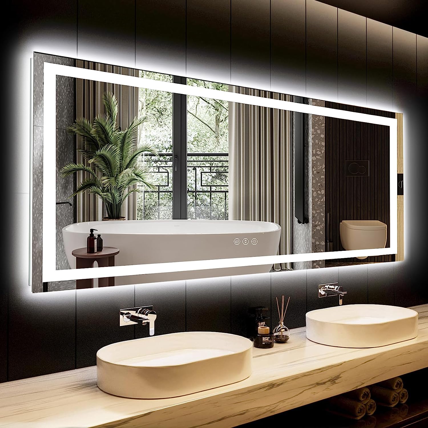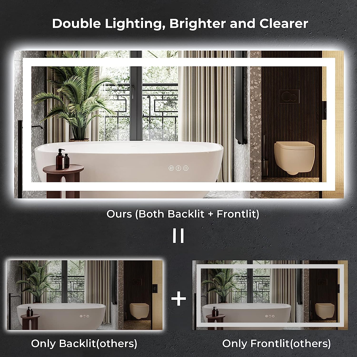 - π Superior Brightness & Double Lights - Unlike traditional bathroom mirrors, our YEELAIT LED mirror features both front and backlit, boasting two bright LED light strips. This delivers more than twice the brightness for a super clear, well-lit experience, perfect for detailed tasks like makeup application, shaving, and dressing. The frameless design adds a modern touch to your home, hotel, salon, or office.