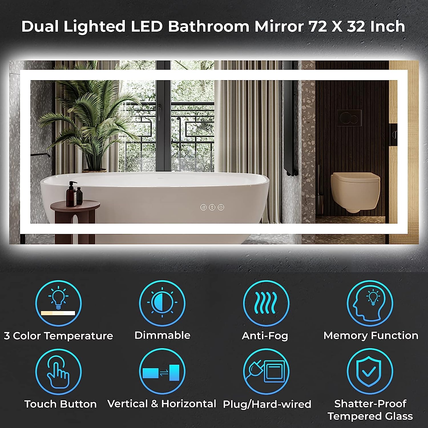 - π§ Flexible Installation - Our LED bathroom mirror comes with two power supply options: plug-in or hardwired. It can be easily controlled using a wall switch for both the lights and anti-fog function. The package includes French cleats for effortless installation, and the mirror can be hung horizontally or vertically to suit your interior design.