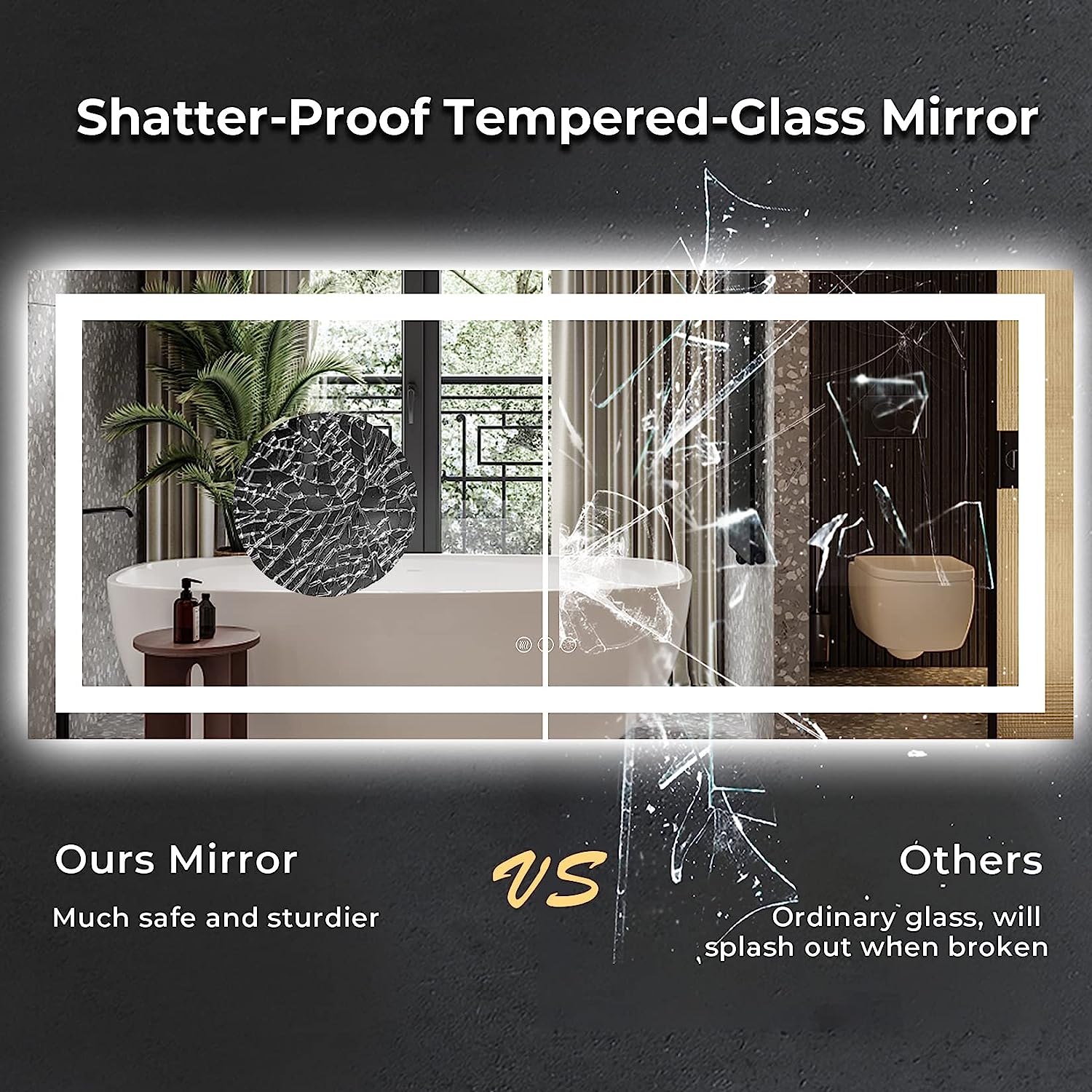 - π‘Shatter-Proof & Waterproof - Crafted from high-quality 5mm shatter-proof tempered glass, our mirror is designed to withstand wear and tear. It won't break easily, and even if it does, it won't shatter into pieces for your safety. The IP54 waterproof rating ensures it's safe to use even in wet bathrooms.