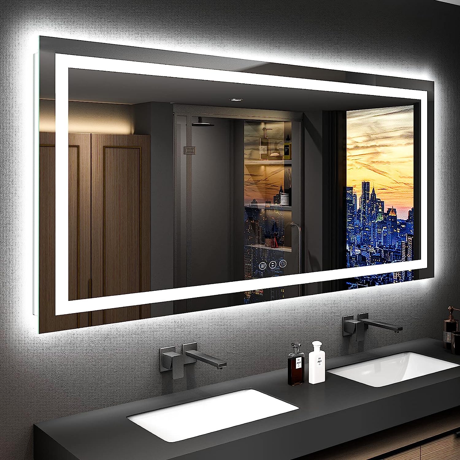 - π Superior Brightness & Double Lights - Unlike traditional bathroom mirrors, our YEELAIT LED mirror features both front and backlit, boasting two bright LED light strips. This delivers more than twice the brightness for a super clear, well-lit experience, perfect for detailed tasks like makeup application, shaving, and dressing. The frameless design adds a modern touch to your home, hotel, salon, or office.