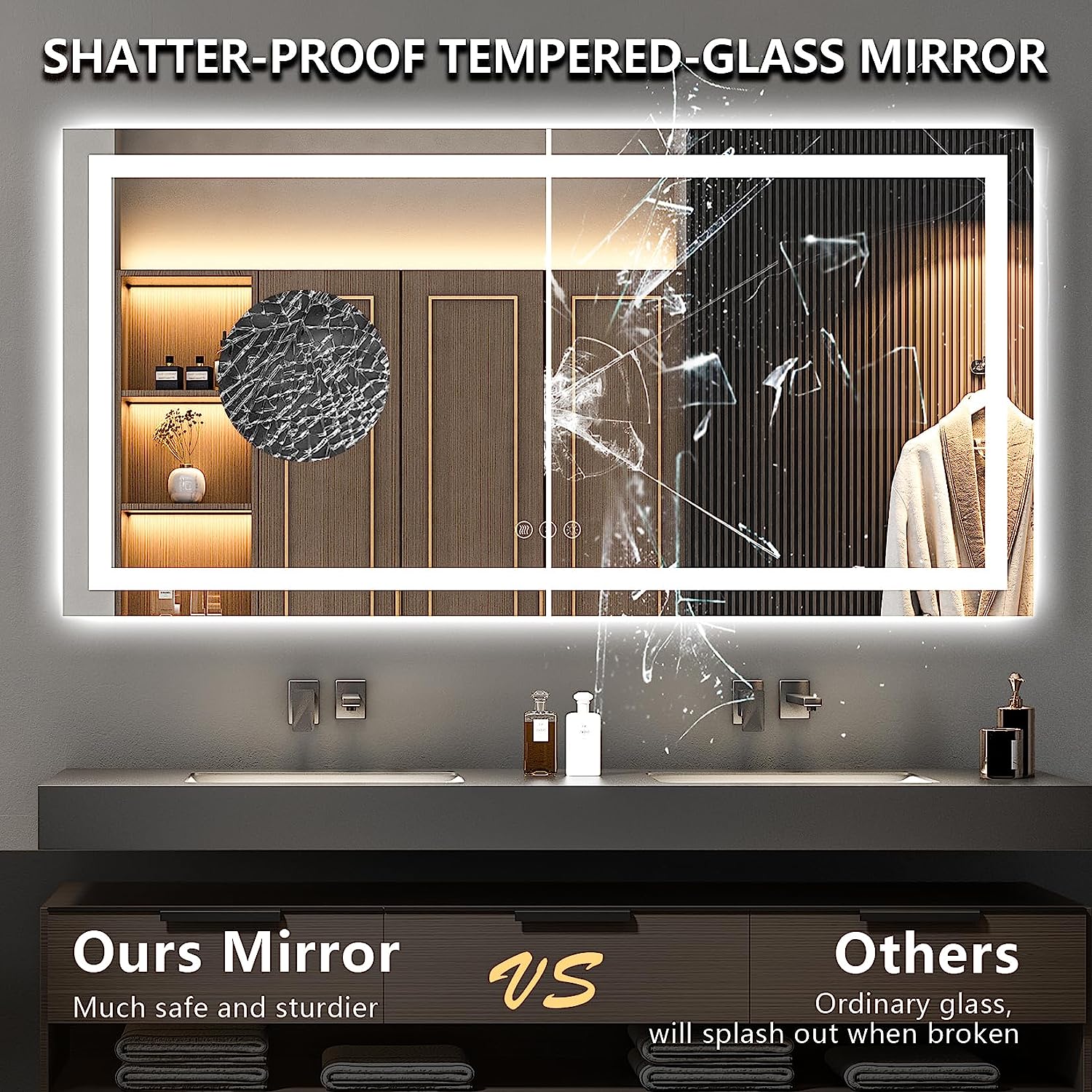 - π‘Shatter-Proof & Waterproof - Crafted from high-quality 5mm shatter-proof tempered glass, our mirror is designed to withstand wear and tear. It won't break easily, and even if it does, it won't shatter into pieces for your safety. The IP54 waterproof rating ensures it's safe to use even in wet bathrooms.
